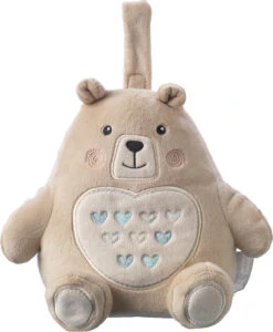 – 5 verschiedene Töne (weißes Rauschen, rosa Rauschen, Meeresrauschen, prasselnder Regen und Mutterleibsgeräusche mit Herzschlag)