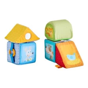 Babys erstes Baustein-Set: Die weichen Stoffwürfel von Haba begeistern mit tollen Funktionen und süßen Tierchen. Stoff-Entdeckerwürfel von Haba 5 unterschiedliche Würfel mit Spiegelfolie, Quietsche, Rassel, Knisterfolie und Klapperringen aus Stoff ab 6 Monaten Die Entdeckerwürfel sind fünf ganz unterschiedliche Bausteine aus Stoff: Auf jedem ist ein anderes Tier abgebildet, das die Kleinsten zum Greifen anregt. In der Spiegelfolie können sich die Kleinen selbst betrachten. Quietsche, Rassel, Knisterfolie und Klapperringe begeistern mit spannenden Geräuschen. Zudem lernen die Kleinsten ab sechs Monaten mit dem Spielzeug erste Farben, Tiere und Formen kennen. Erste Stapelversuche fördern spielerisch die Hand-Auge-Koordination.