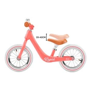Mit dem Laufrad Rapid von Kinderkraft ist der Nachwuchs flink unterwegs: Das im Retro-Stil gehaltene Design punktet mit einem geringen Gewicht, kugelgelagerten Luftreifen und technischem Know-how. ab 3 Jahren belastbar bis 35 kg 3,75 kg, 85(L) x 39(B) x 53(H) cm, Raddurchmesser 30 cm leichter Rahmen aus Magnesiumlegierung, Vordergabel aus Stahl, höhenverstellbarer Sattel (33 bis 42 cm), begrenzter Lenkeinschlag, rutschhemmende Griffe, kugelgelagerte Luftreifen, Klingel Das Laufrad Rapid von Kinderkraft punktet im stilvollen Retro-Look. Sein Rahmen ist in einem Guss aus einer leichten Magnesiumlegierung gefertigt. So können bereits Kinder ab drei Jahren das nicht einmal vier Kilogramm schwere Bike selbstständig handhaben. Der ergonomisch geformte Sattel kann in der Höhe verstellt werden. So profitieren die Kids stets von einem Rad, das individuell an ihre Maße angepasst ist. Der Lenker liegt ihnen dank rutschhemmender Gummigriffe gut in der Hand. Sein Einschlagwinkel ist begrenzt. Beim Abbiegen fällt es den kleinen Nachwuchs-Bikern so leichter, die Balance zu halten. Für hohen Fahrkomfort auf jedem Untergrund sorgen die kugelgelagerten Luftreifen. Sie sind optimal auf den Nachwuchs abgestimmt und kommen ohne Kleinteile aus. Eine Drehklingel rundet das bis zu 35 Kilogramm belastbare Retro-Rad gelungen ab.