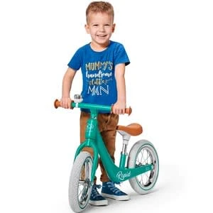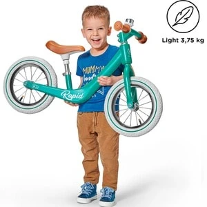 Mit dem Laufrad Rapid von Kinderkraft ist der Nachwuchs flink unterwegs: Das im Retro-Stil gehaltene Design punktet mit einem geringen Gewicht, kugelgelagerten Luftreifen und technischem Know-how. ab 3 Jahren belastbar bis 35 kg 3,75 kg, 85(L) x 39(B) x 53(H) cm, Raddurchmesser 30 cm leichter Rahmen aus Magnesiumlegierung, Vordergabel aus Stahl, höhenverstellbarer Sattel (33 bis 42 cm), begrenzter Lenkeinschlag, rutschhemmende Griffe, kugelgelagerte Luftreifen, Klingel Das Laufrad Rapid von Kinderkraft punktet im stilvollen Retro-Look. Sein Rahmen ist in einem Guss aus einer leichten Magnesiumlegierung gefertigt. So können bereits Kinder ab drei Jahren das nicht einmal vier Kilogramm schwere Bike selbstständig handhaben. Der ergonomisch geformte Sattel kann in der Höhe verstellt werden. So profitieren die Kids stets von einem Rad, das individuell an ihre Maße angepasst ist. Der Lenker liegt ihnen dank rutschhemmender Gummigriffe gut in der Hand. Sein Einschlagwinkel ist begrenzt. Beim Abbiegen fällt es den kleinen Nachwuchs-Bikern so leichter, die Balance zu halten. Für hohen Fahrkomfort auf jedem Untergrund sorgen die kugelgelagerten Luftreifen. Sie sind optimal auf den Nachwuchs abgestimmt und kommen ohne Kleinteile aus. Eine Drehklingel rundet das bis zu 35 Kilogramm belastbare Retro-Rad gelungen ab.