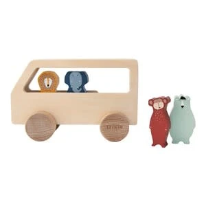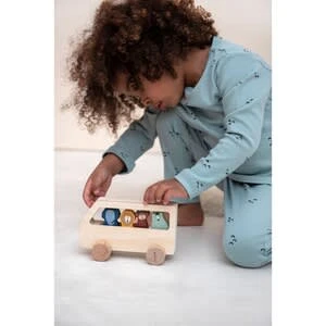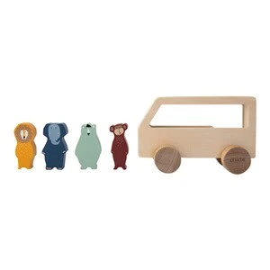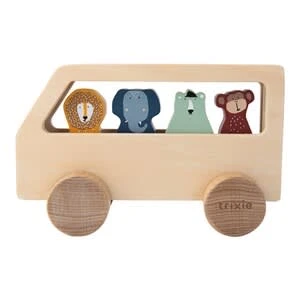 Mit dem Schiebespielzeug von Trixie trainieren Kinder ab 18 Monaten ihre Feinmotorik. Sie können die niedlichen Tiere einzeln in den Bus ein- oder aussteigen lassen. Schiebespielzeug Bus mit Tieren von Trixie 4 Tier-Figuren, 1 Bus 18(L) x 6(B) x 12(H) cm aus Buchen- und Sperrholz, Farben auf Wasserbasis ab 18 Monaten geeignet Alle einsteigen bitte: Der Bus hält an der Haltestelle an und nimmt vier Reisende auf. Der Elefant, der Löwe, der Bär und der Affe können einzeln ein- und aussteigen. Das wiederholte Einsetzen und Herausnehmen der Figuren fördert die motorischen Fähigkeiten und verbessert die Hand-Auge-Koordination der Kids. Das Schiebespielzeug kann leicht über den Boden gerollt werden. Es ist aus stabilem Holz gefertigt und mit Farben auf Wasserbasis koloriert.